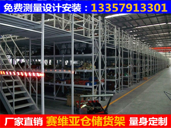 無錫賽維亞設(shè)計(jì)的閣樓貨架一舉兩用,不僅能增加場地使用面積,同時(shí)閣樓貨架下班能做層板貨架。